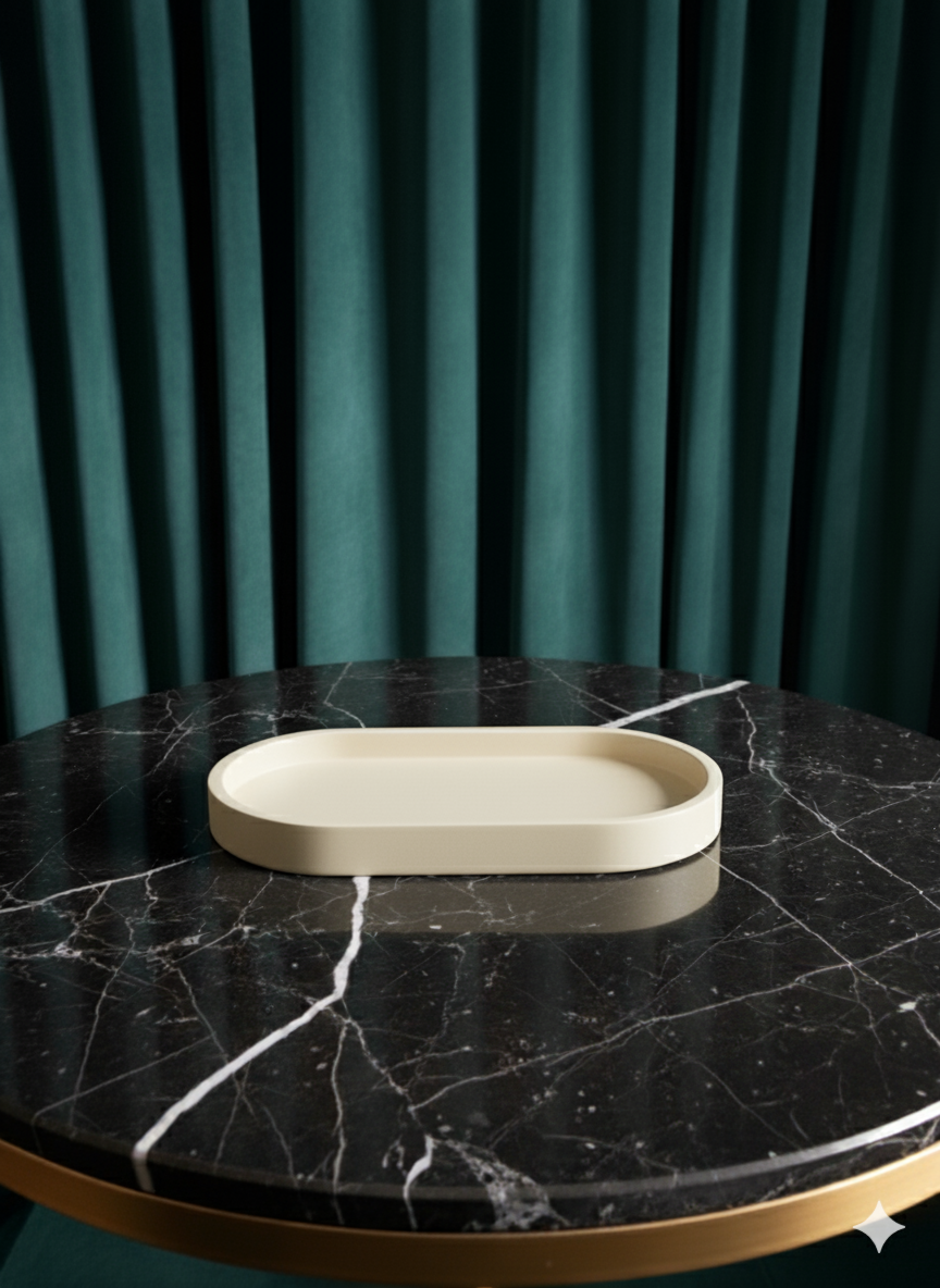 Išskirtinio dizaino padėklas taps elegantišku akcentu jūsų namų interjere. Padėklas puikiai tiks stilingam papuošalų, kosmetikos, aksesuarų, raktų ar kitų smulkmenų laikymui ir eksponavimui. Moderni spalva suteiks prabangos pojūtį bet kurioje erdvėje – miegamajame, vonioje ar prieškambaryje. Idealus pasirinkimas norintiems tvarkingai susidėlioti daiktus ir tuo pačiu papuošti interjerą. Puiki dovana sau ar artimam žmogui.